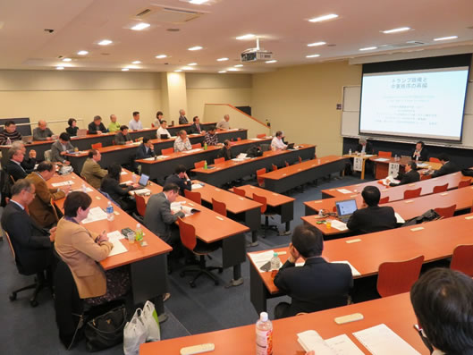 第25回日本安全保障貿易学会研究大会は、約45名の参加者を得て2018年3月17日(土)に同志社大学にて開催された。自由論題セッションは応募が無かったため、午後のテーマセッションのみで開催された。